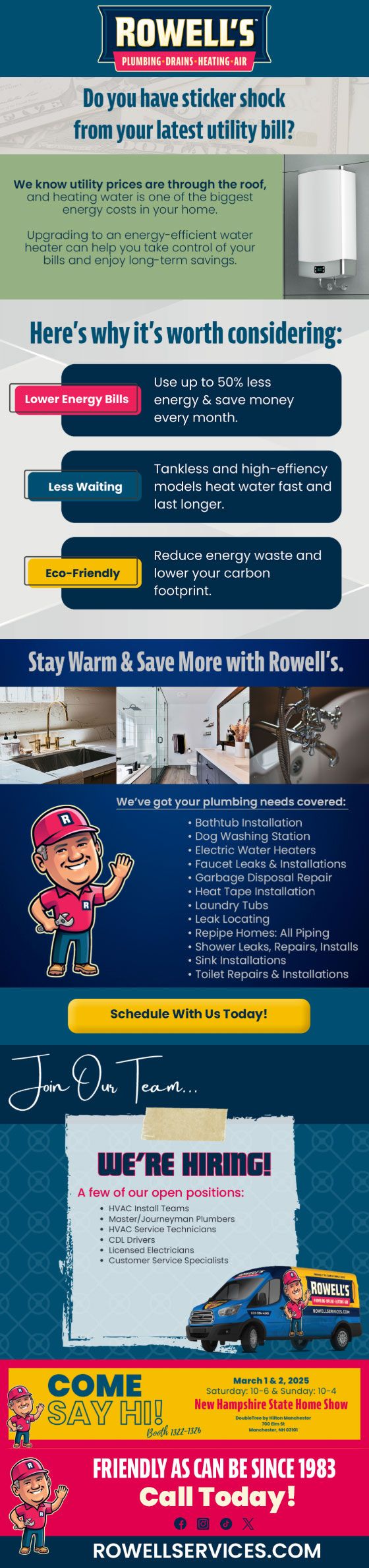 We know utility prices are through the roof, and heating water is one of the biggest energy costs in your home. Upgrading to an energy-efficient water heater can help you take control of your bills and enjoy long-term savings.